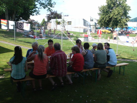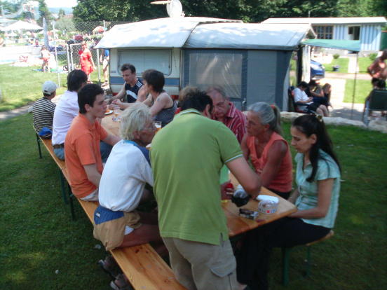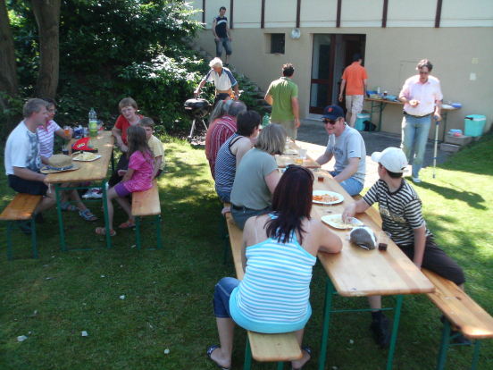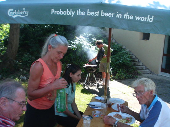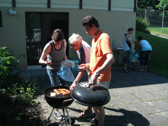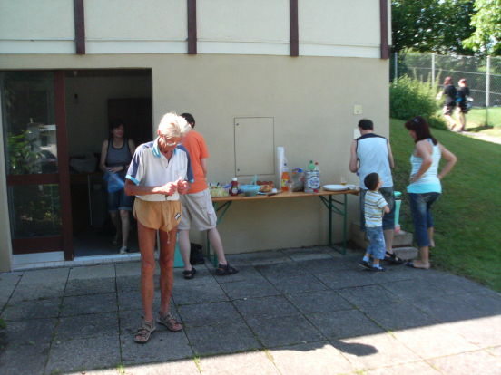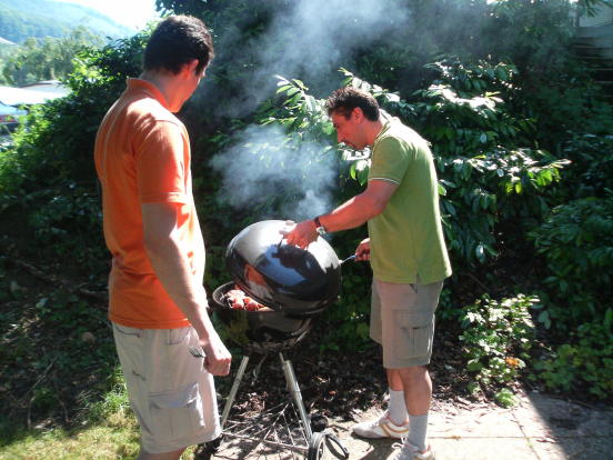 Wie jedes Jahr trafen sich am 22. Juni knapp 20 Personen zum Bushido-Bröötle vor unserem Dojo. Schwein gehabt, denn eine halbe Stunde vor Beginn zog eine heftige Gewitterfront über Frick und führte in der Badi drüben zu einer Massenflucht. Um 15 Uhr war der Spuk dann aber vorüber und die Sonne mit ihren über 30°C trocknete alles sofort wieder - unser Bröötle konnte beginnen: