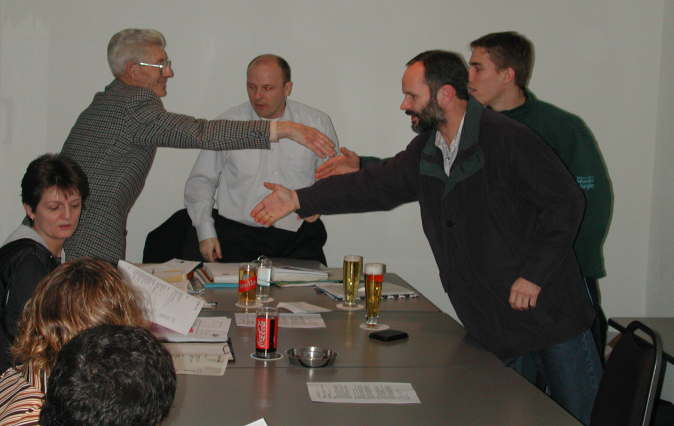 Pierre Bernert, unser Ehrenpräsident führt die Wahlen der neuen Vorstandsmitglieder und des neuen Präsis durch.