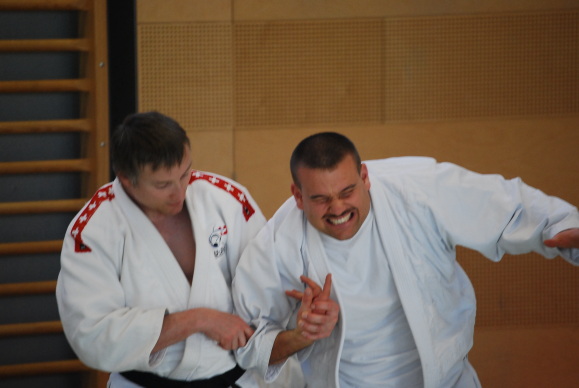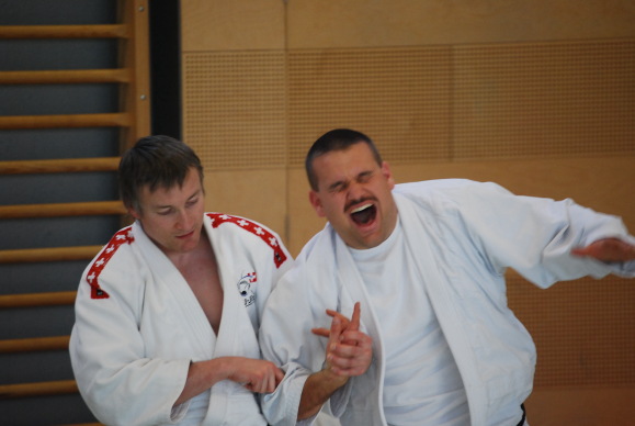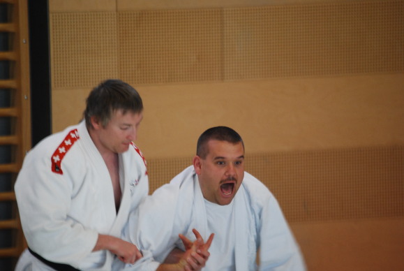 Hazumi Gashaki bei Toby Bauert in Baar. Viele top-Budo-Lehrer waren da (u.a. Soke Kevin Pell aus England) und Bernard und ich waren auch mit von der Partie. Warum kann ich mich heute noch so gut an gewisse Momente dort erinnern? Die Antwort findet sich gleich weiter unten...