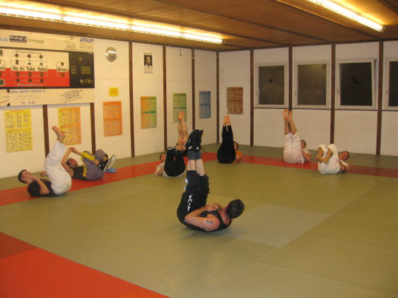 Dann kurz vor Weihnachten der Nachschlag: Ruedi (Besitzer Budoschule Wädenswil) macht Jiu mit uns: