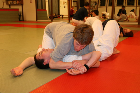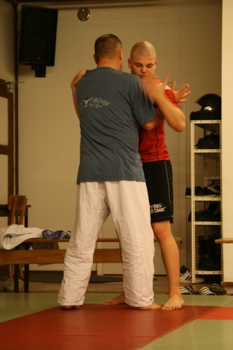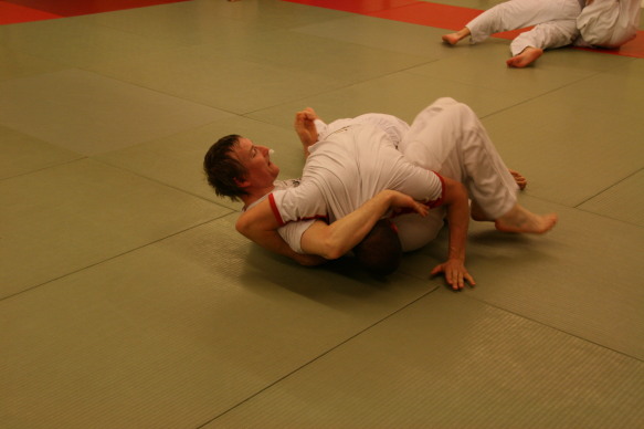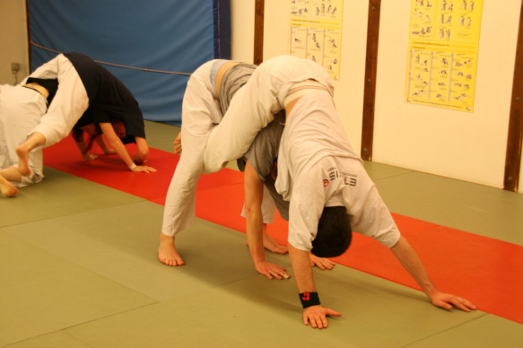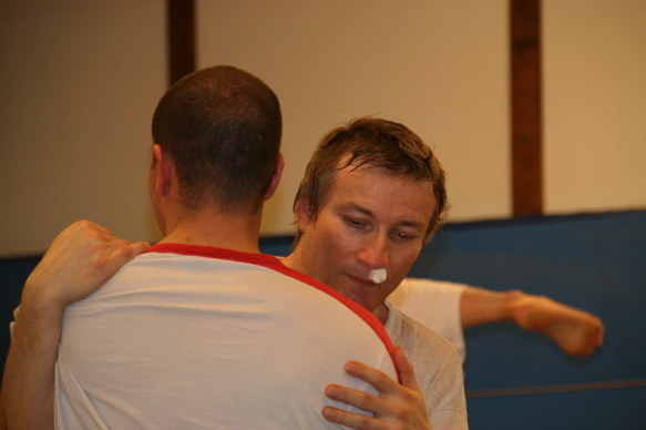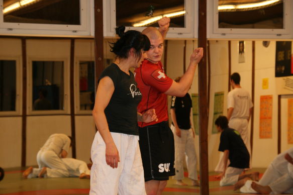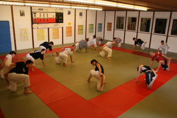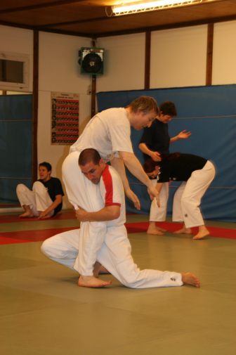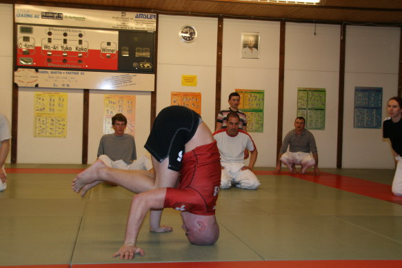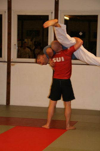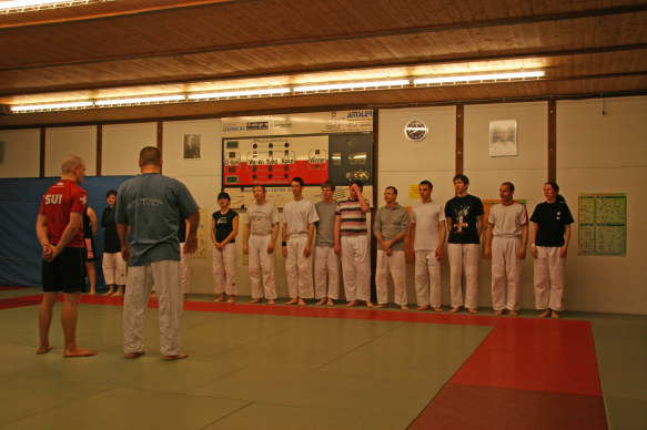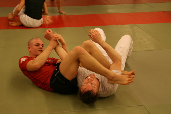 Offenheit ist bei uns Tradition. Wir pflegen das über-den-Zaun-schauen regelmässig, um ja keine Inzucht oder Selbstherrlichkeit aufkommen zu lassen. In diesem Rahmen hat Peter Mettler vom Yogaka in Root (LU) bei uns am 23. März 2009 ein Training geleitet und uns die Welt von Freefighting, Brazilian Ju-Jitsu, MMA, Grappling, Vale Tudo, Ringen, Sambo und weiteren für uns nicht alltäglichen Sportarten eingeführt. Wie schon oft durften wir erkennen, dass die Prinzipien seiner Techniken und sogar einige Techniken selbst unseren sehr ähnlich sind. Es gab aber natürlich eine Menge neuer Ideen, welche wir sehr gut in unser Repertoire aufnehmen können. Die hohe Professionalität von Peter (man merkt's rasch: Er trainiert täglich...) hat uns derart in den Bann gezogen, dass wir den Event heuer wahrscheinlich wiederholen werden. Hier einige Bilder von dem tollen Anlass: